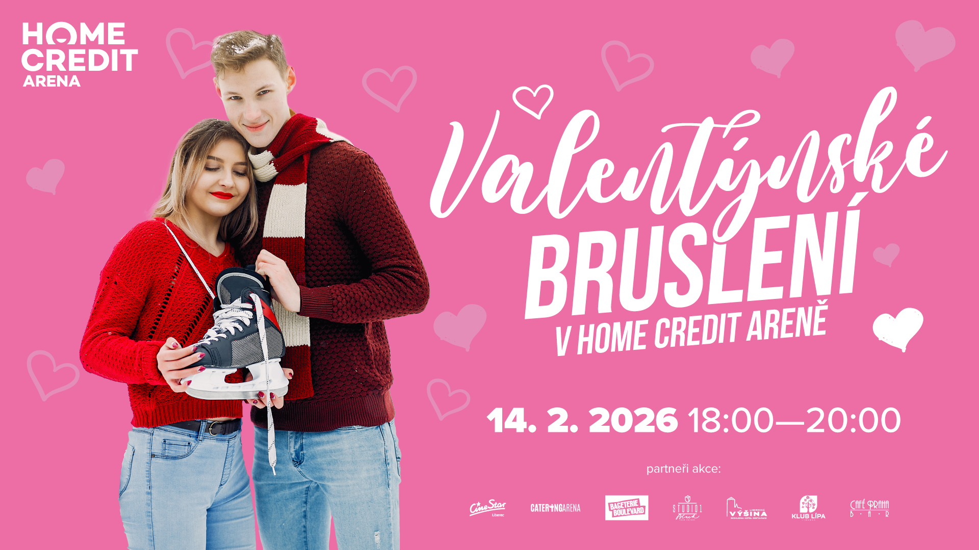 Romantické bruslení proběhne přímo v podvečer sv. Valentýna v sobotu 14. 2. 2025 od 18:00 do 20:00 hod.